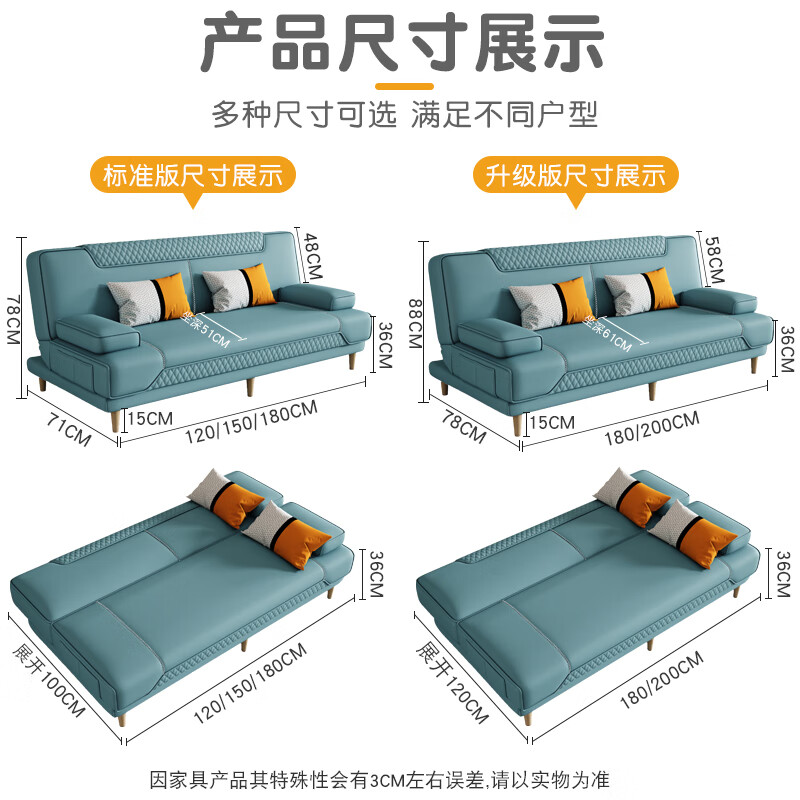 品上凯迪斯 现代简约多功能沙发床两用可折叠沙发床客厅沙发小户型懒人沙发 【新款猫抓皮】浅灰 炫彩海绵款】1.8米长2扶手2腰枕