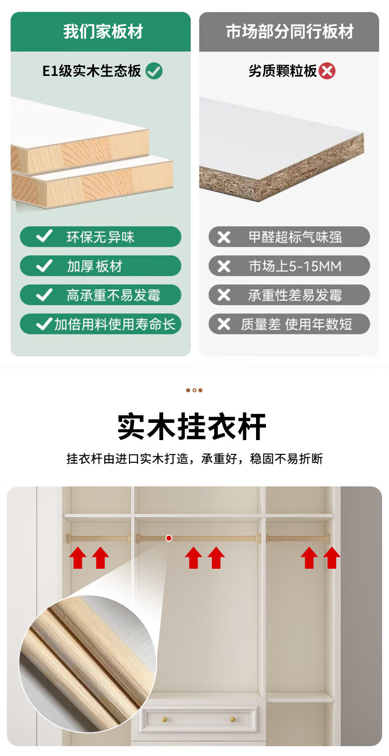拥爱定制橡木实木衣柜全实木原木色家用卧室分段式大衣橱 0.8米长两门 2.0米高-ENF母婴级环保抗菌橡木