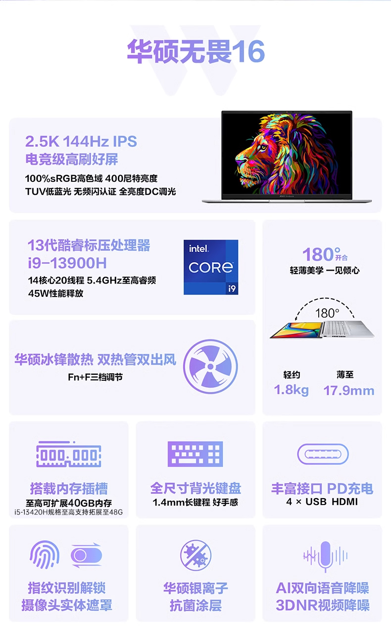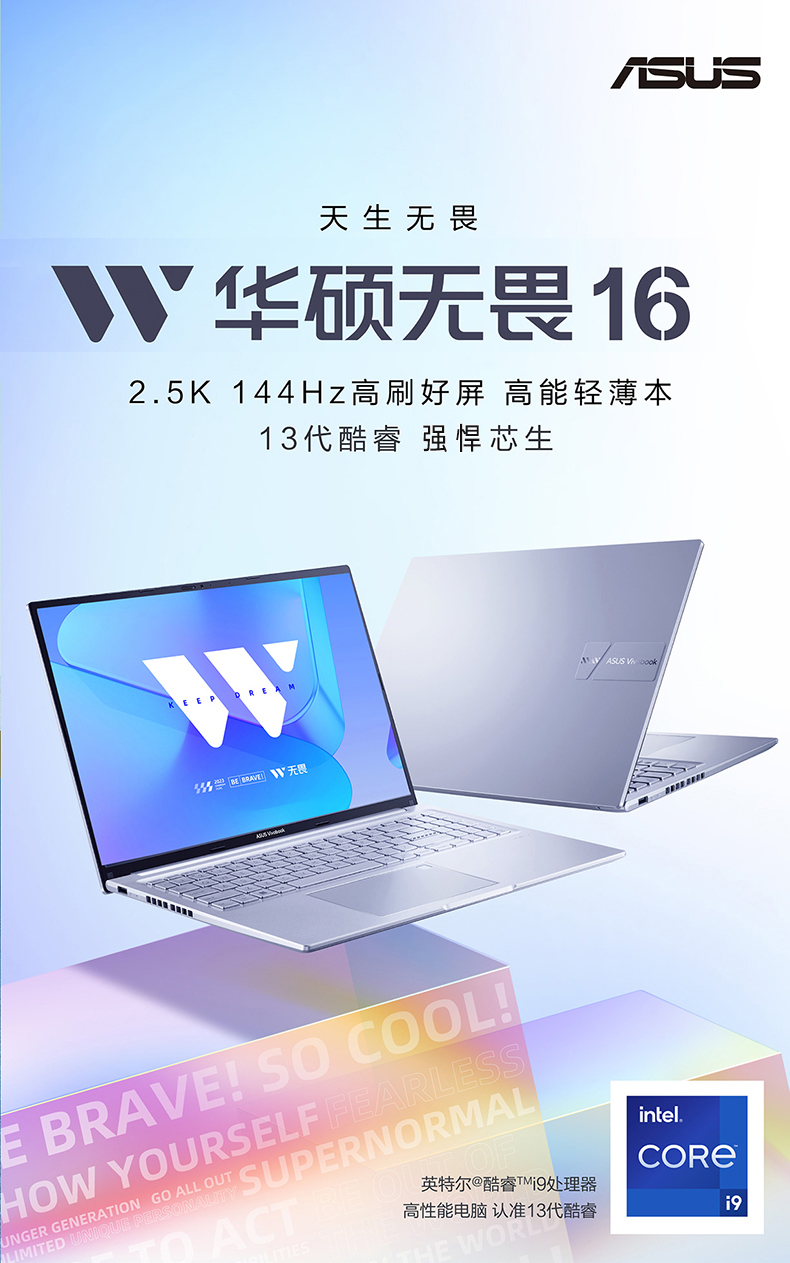 华硕无畏16 13代英特尔酷睿i9 高能轻薄本16英寸2.5K笔记本电脑学生办公本官方旗舰店