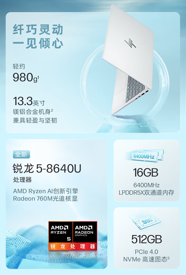 HP/惠普 星Bookpro13 锐龙R5/R7星13air 13.3英寸轻薄便携手提商务办公学生设计笔记本电脑官方旗舰官网正品