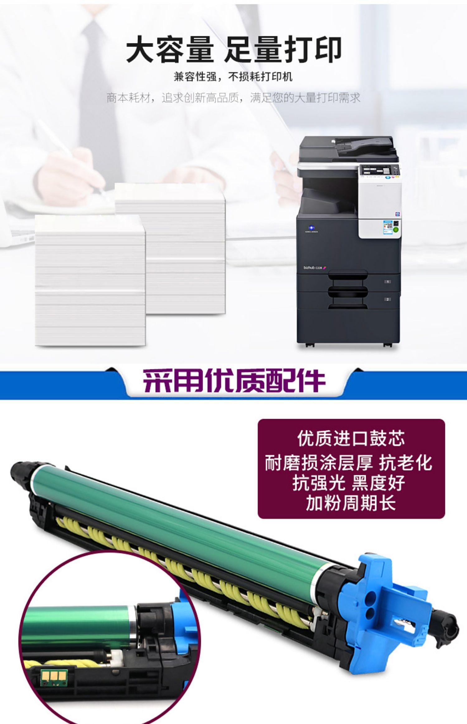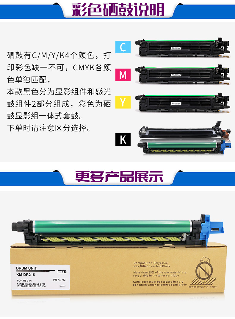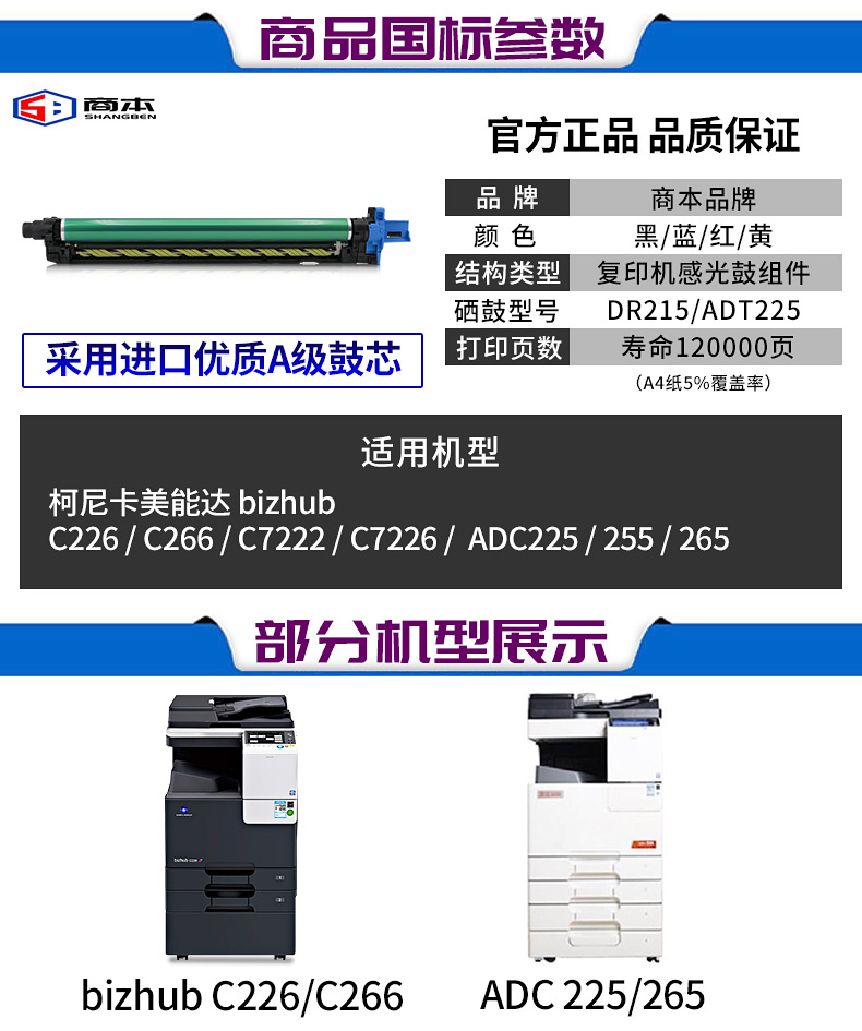 商本适用柯尼卡美能达C226 C7222震旦ADC225 265 C266硒鼓感光鼓单元K套鼓C227 C287 215K C7226成像鼓组件
