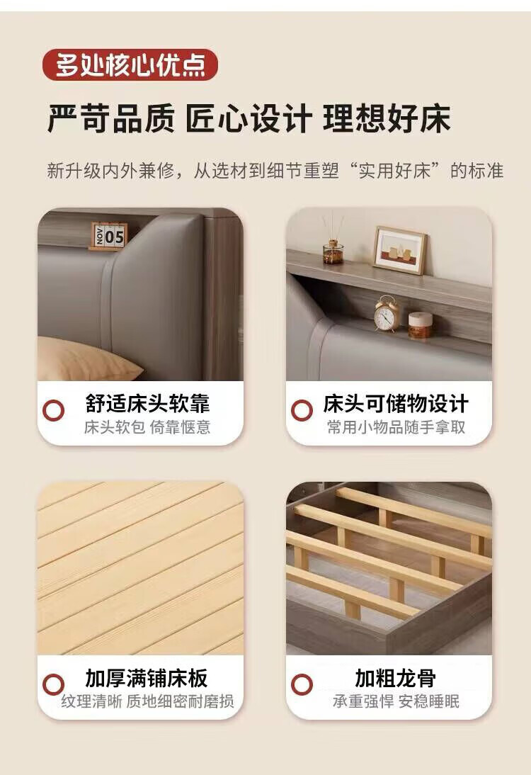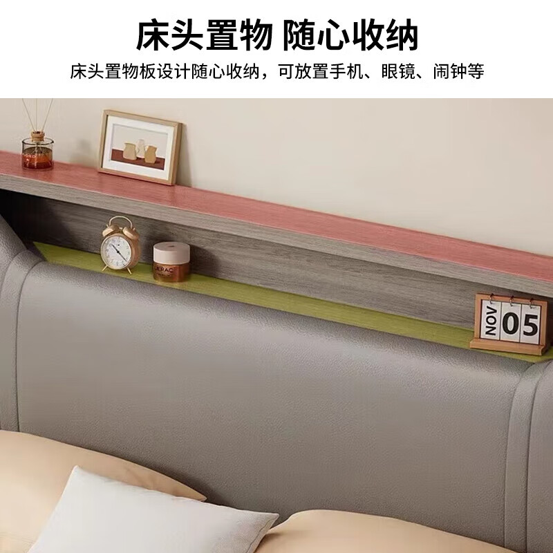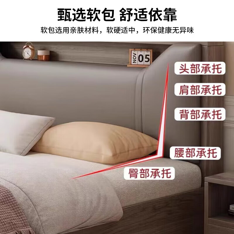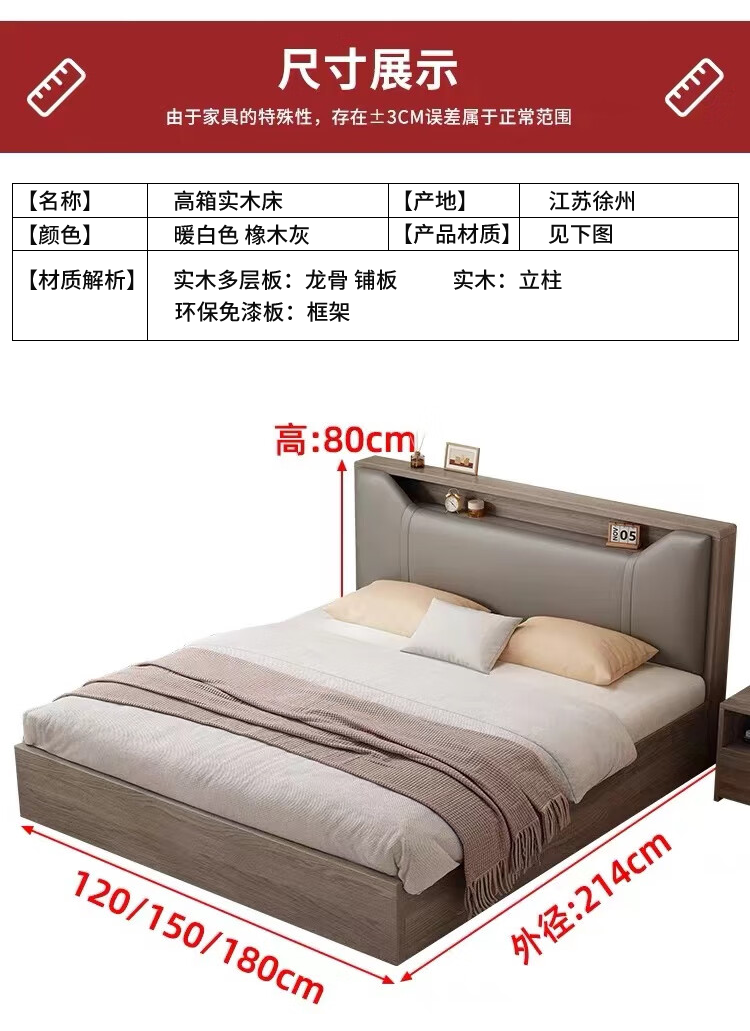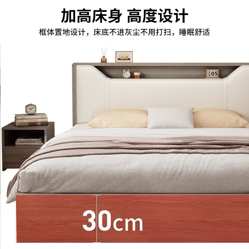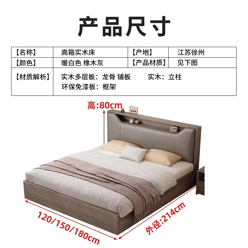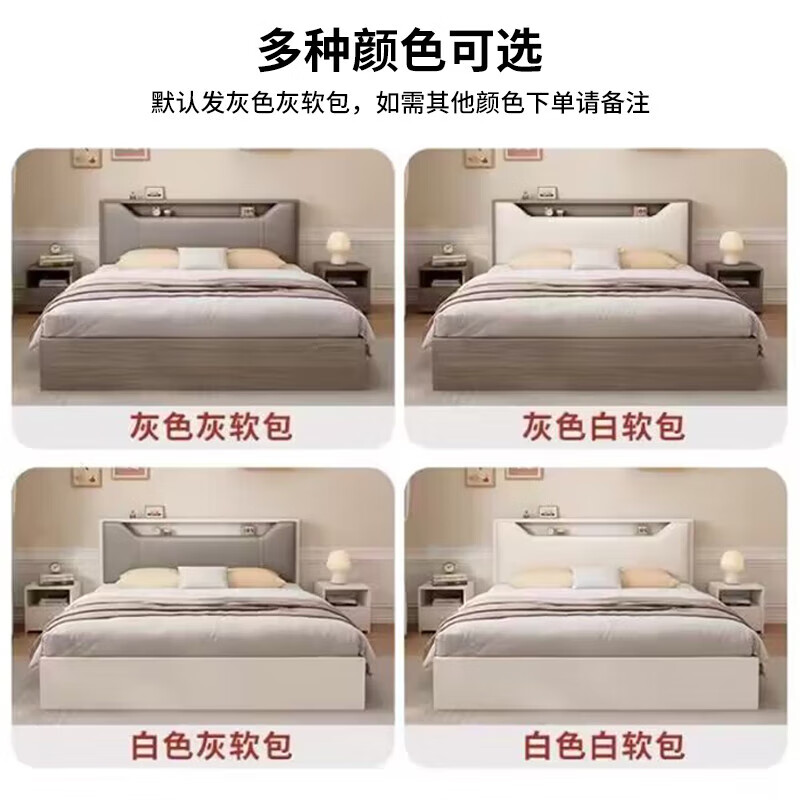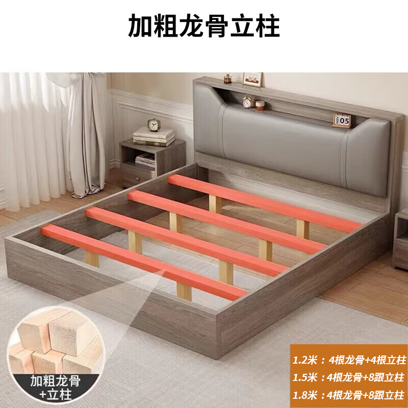 迎裕财实木床简约现代主卧家用1.5单人床出租房用1.8米榻榻米软包 【加厚款】橡木灰色单床 1500mm*2000mm