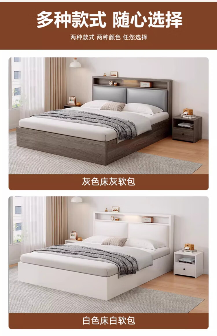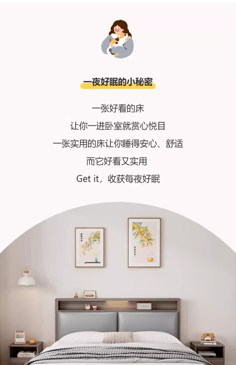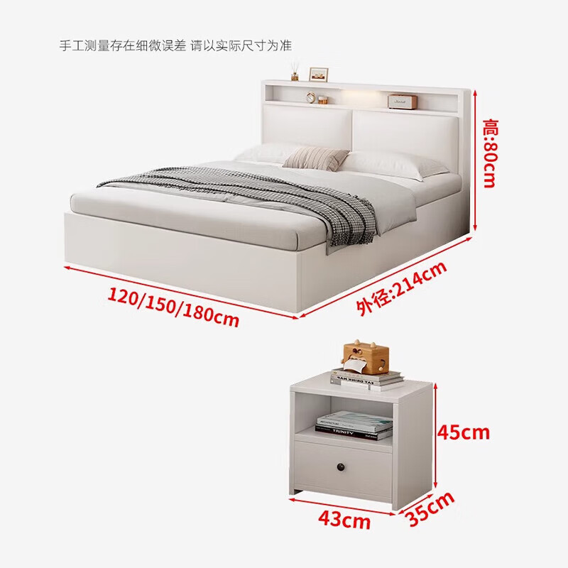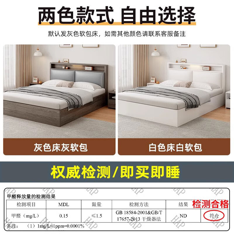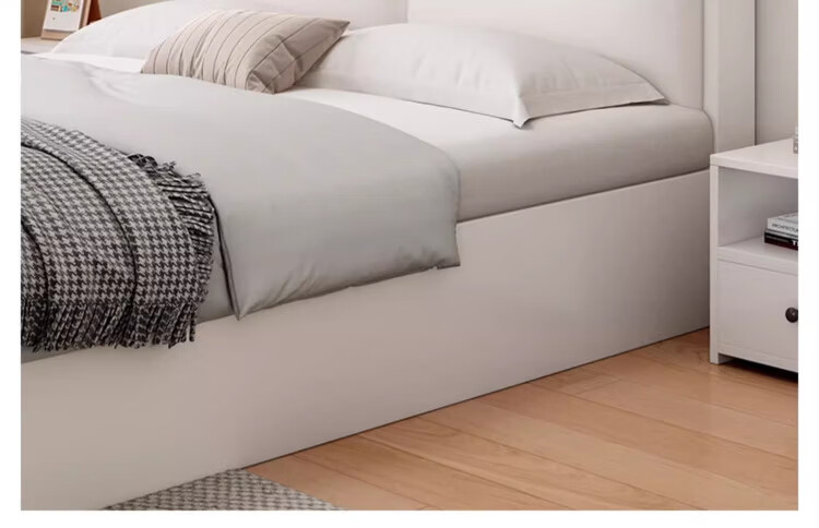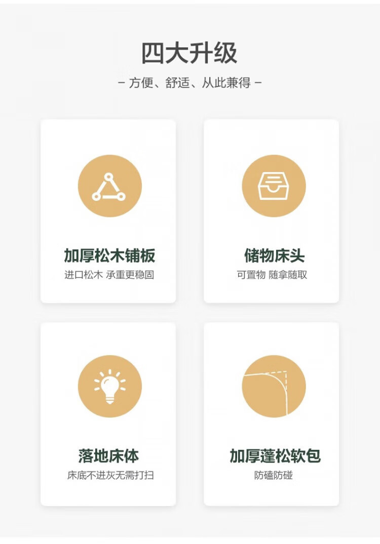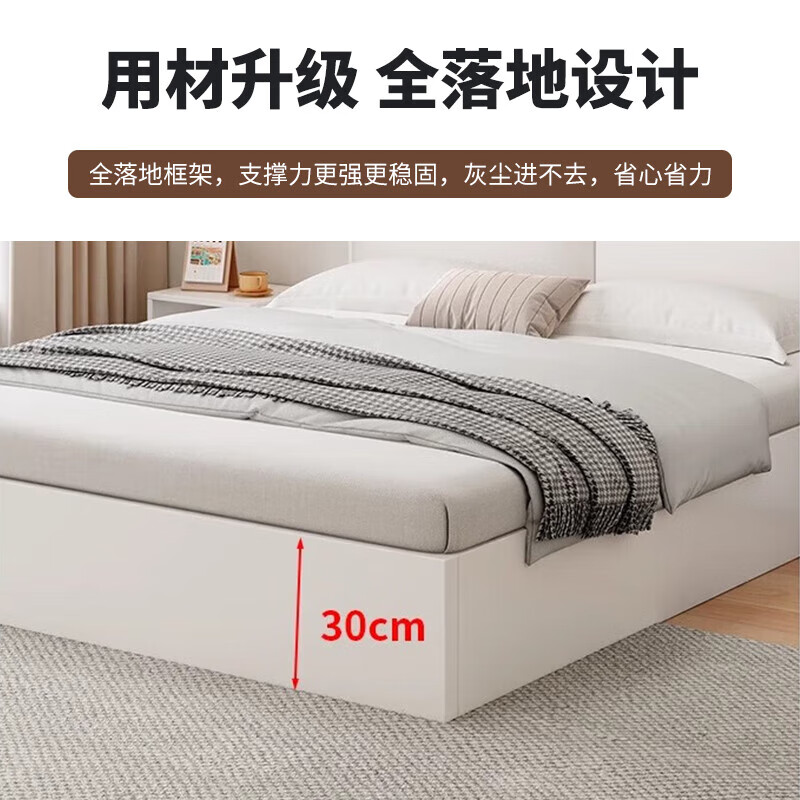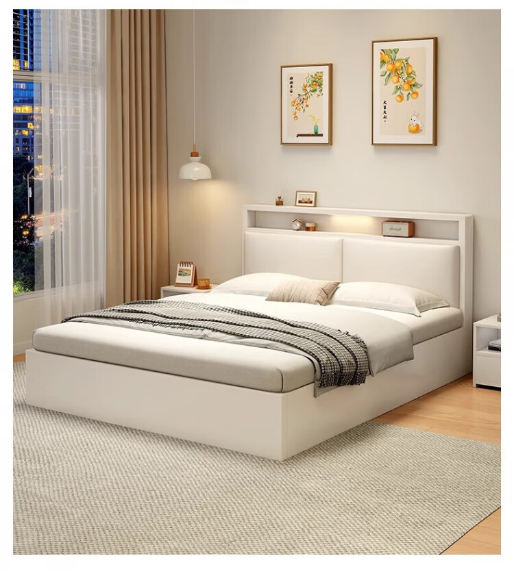 迎裕财实木床简约现代主卧家用单人床出租房用软包 暖白色单床 1.8*2米