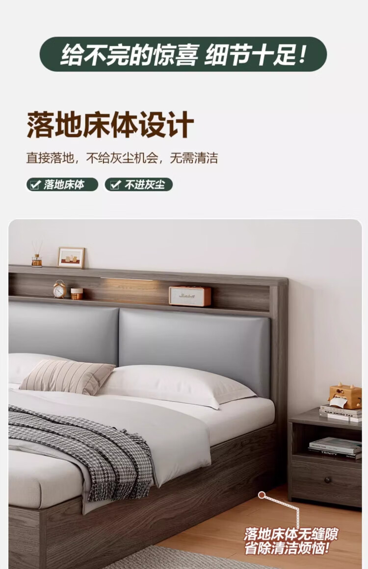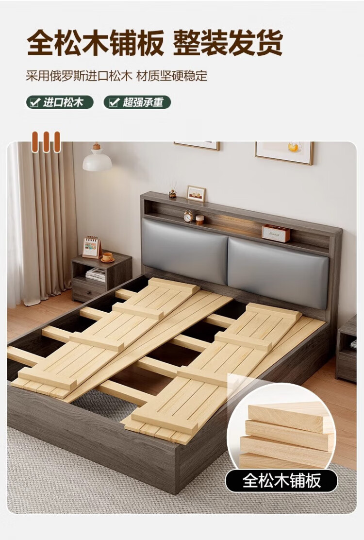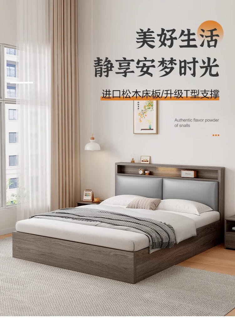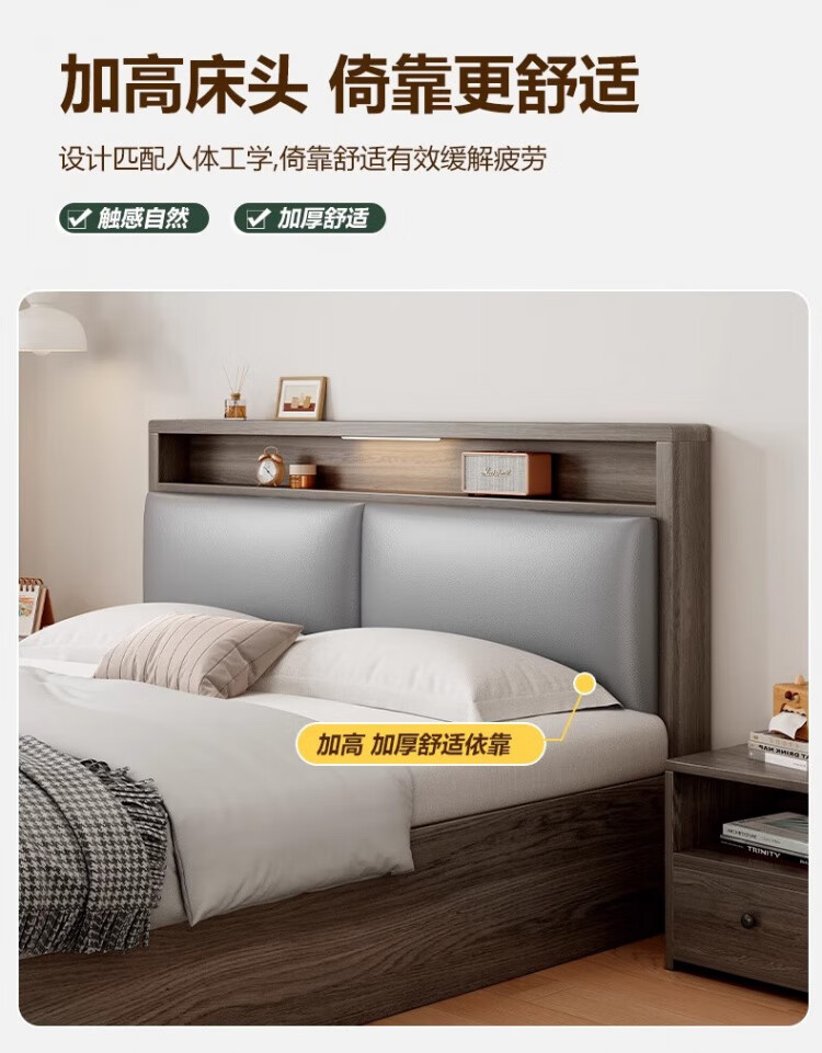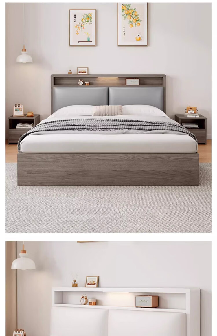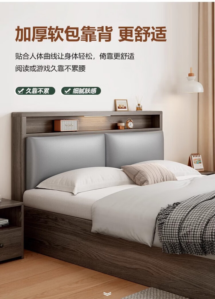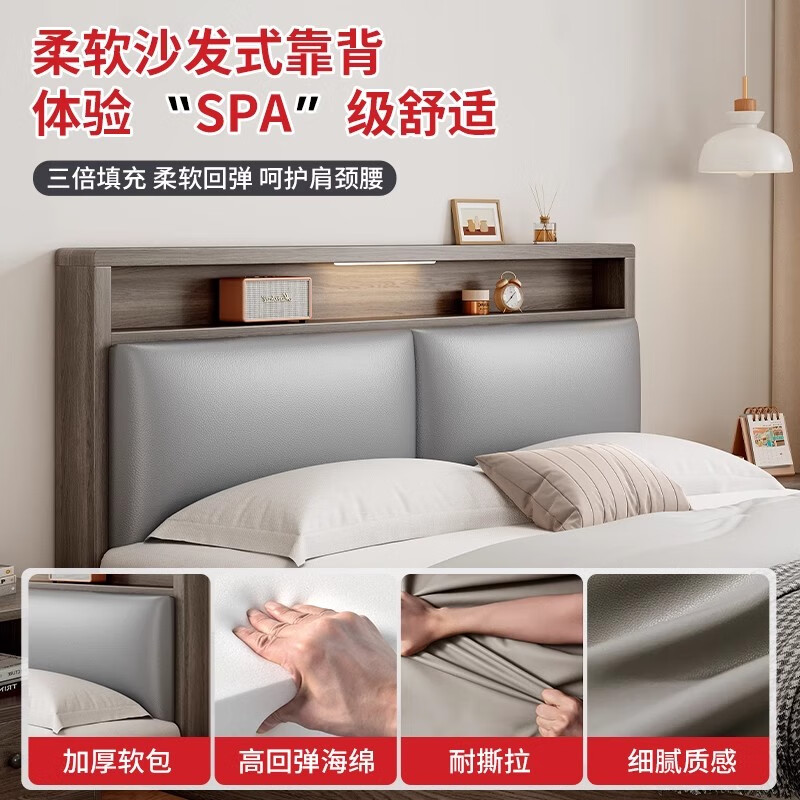 迎裕财实木床简约现代主卧家用单人床出租房用软包 暖白色单床 1.8*2米