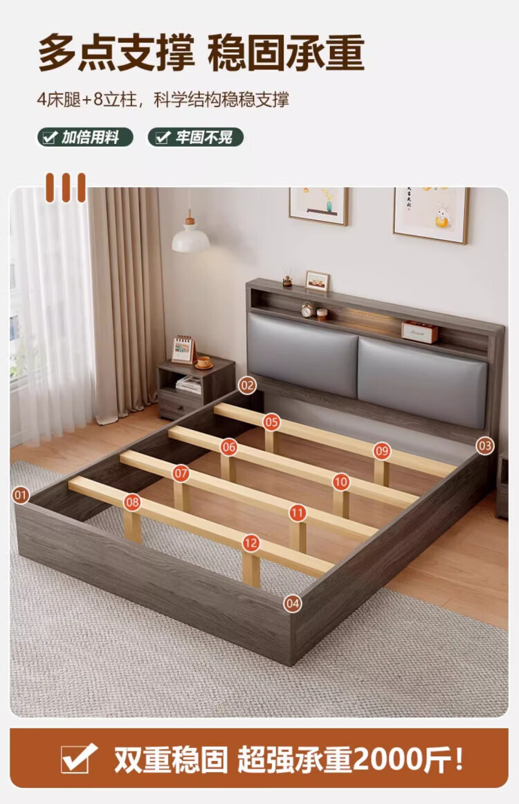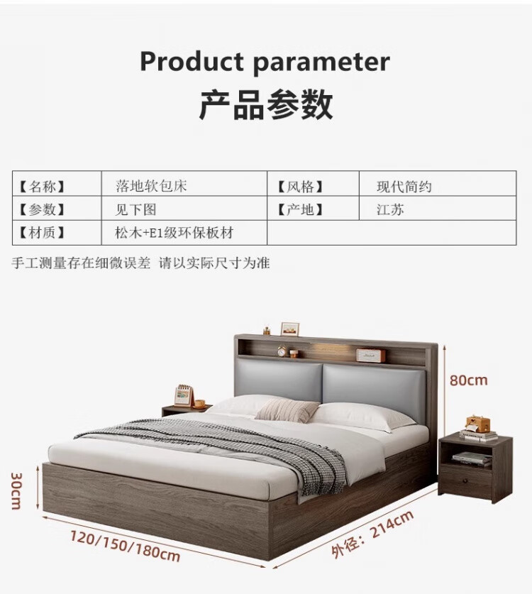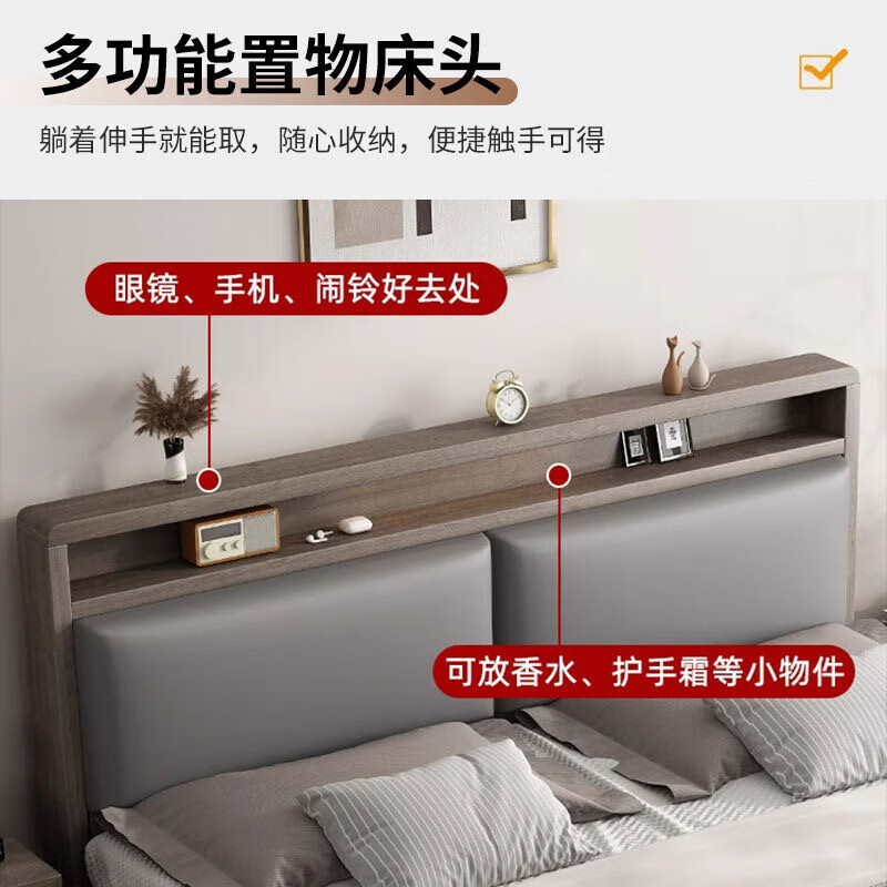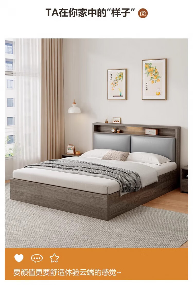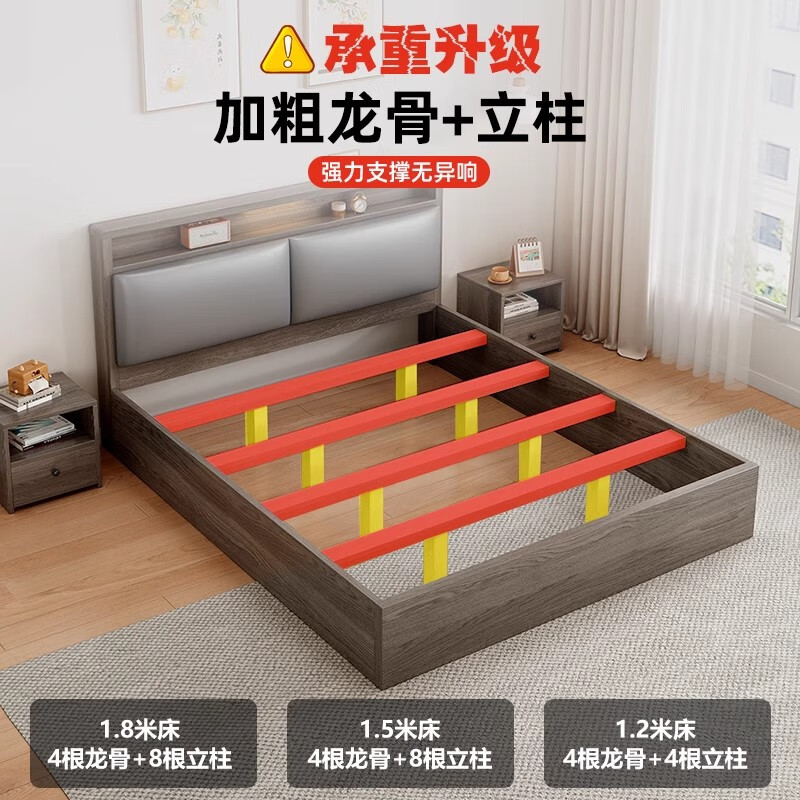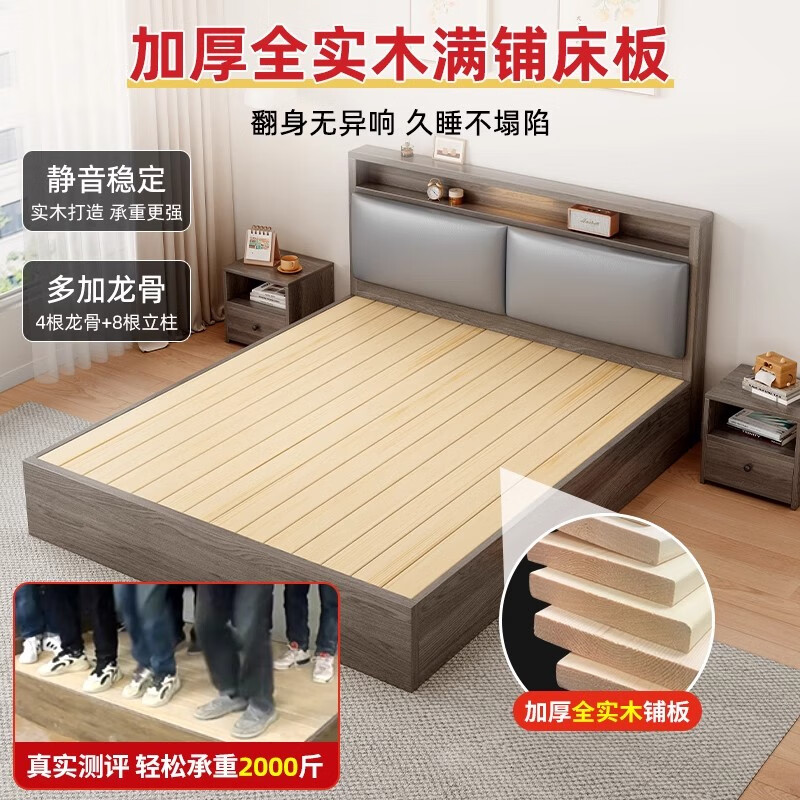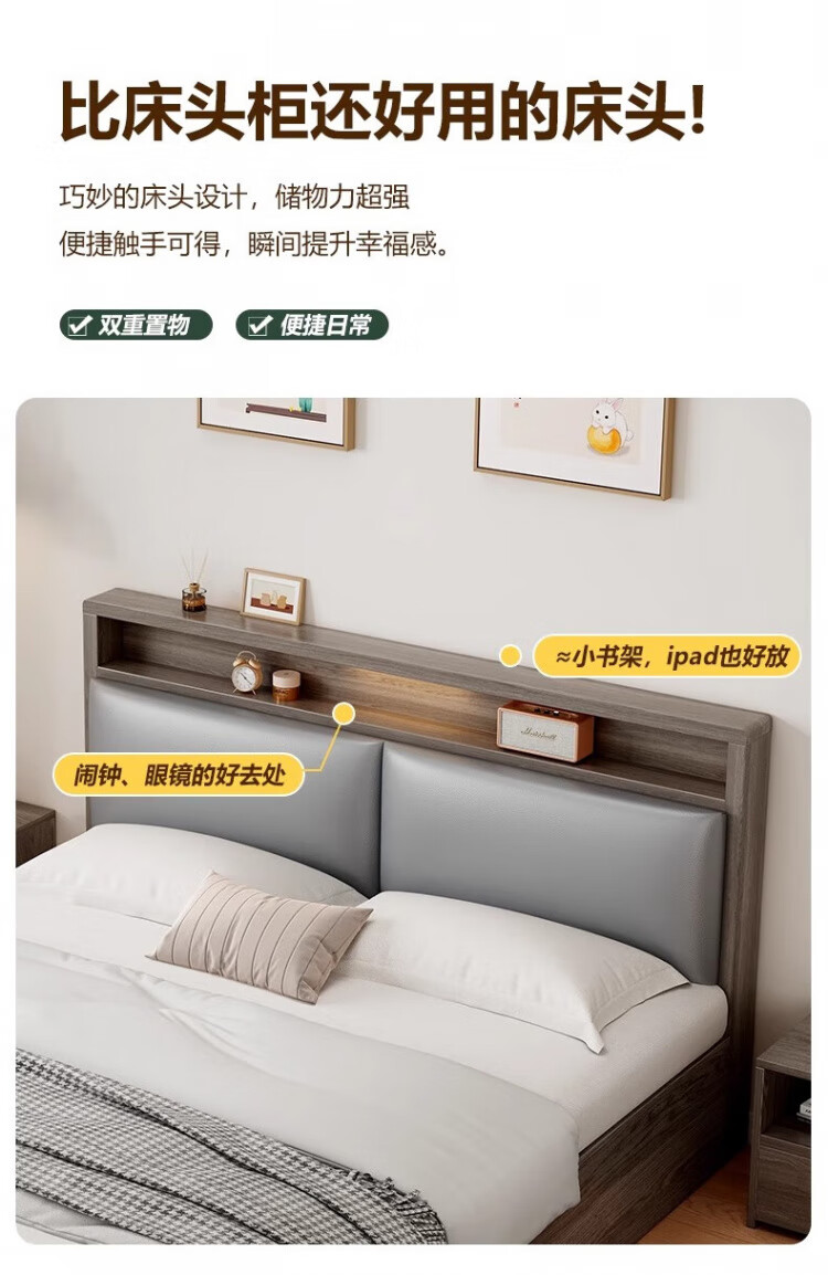 迎裕财实木床简约现代主卧家用单人床出租房用软包 暖白色单床 1.8*2米