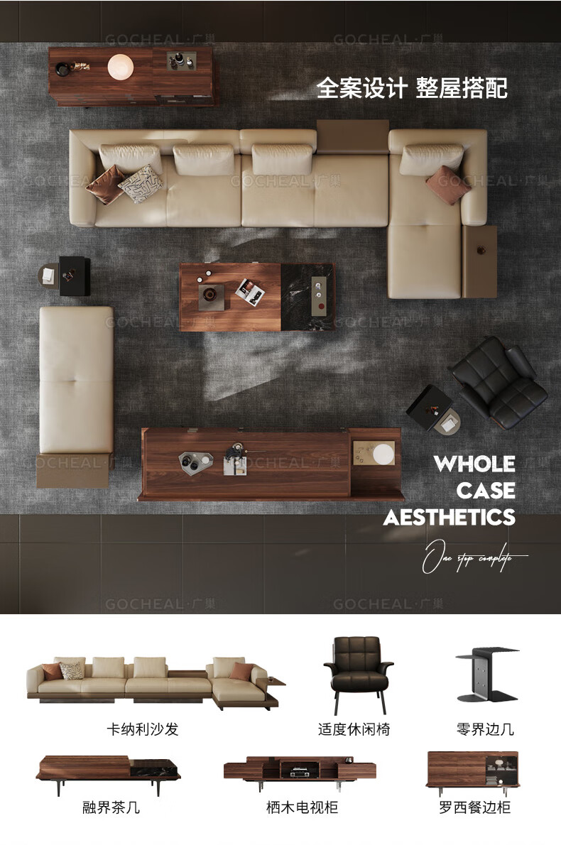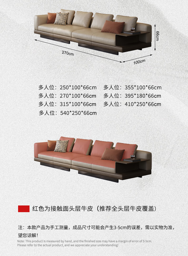 广巢(GUANGCHAO)卡纳利头层牛沙发意式高端客厅小户型直排组合真皮康纳利沙发B 多人位2.7米 【卡纳利沙发/加厚细摔头层牛皮/接触面】