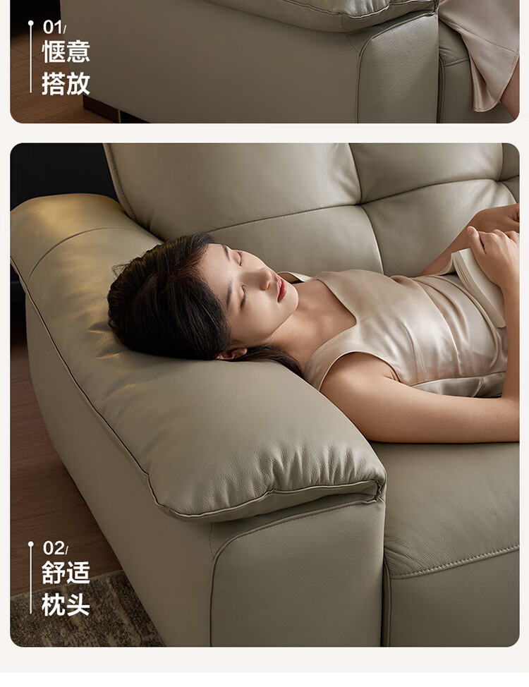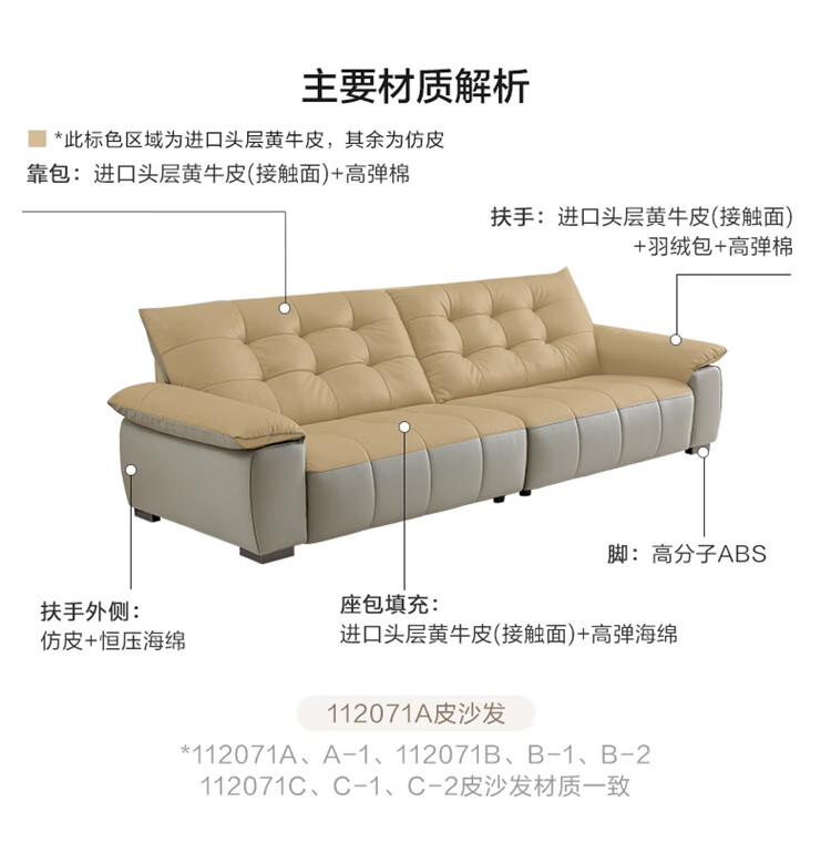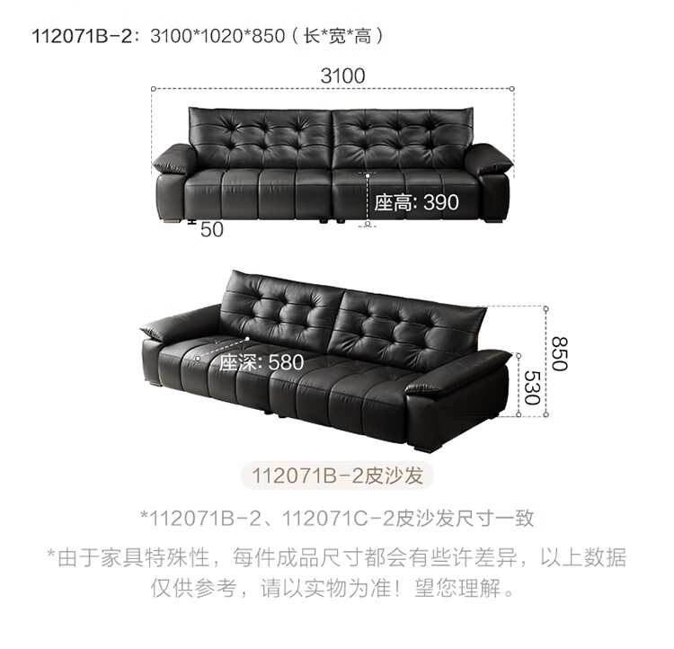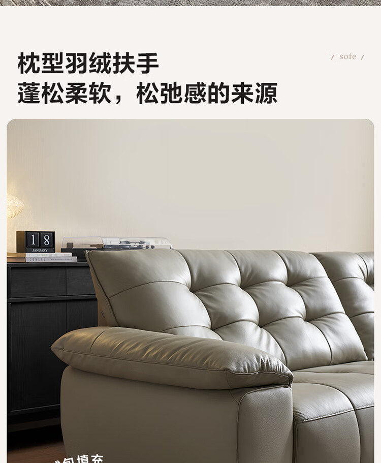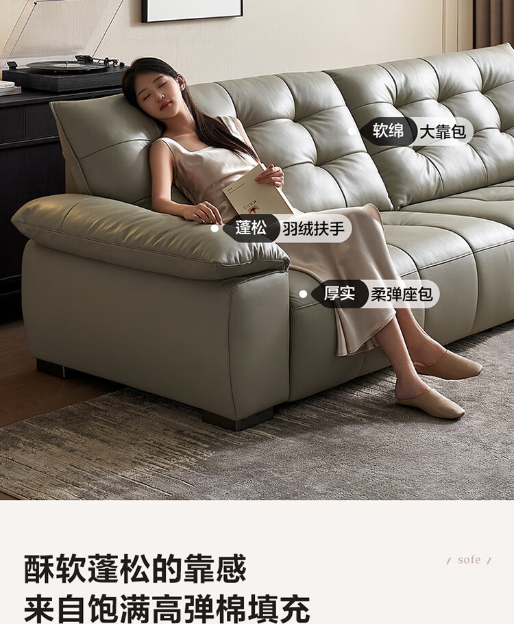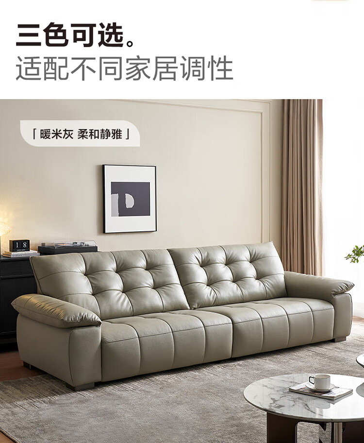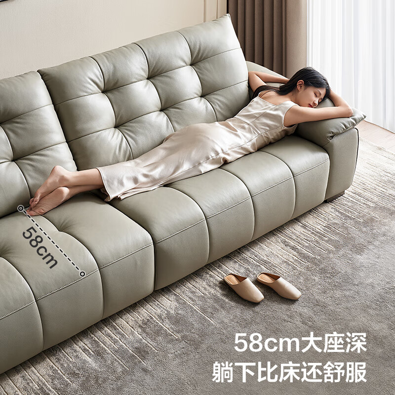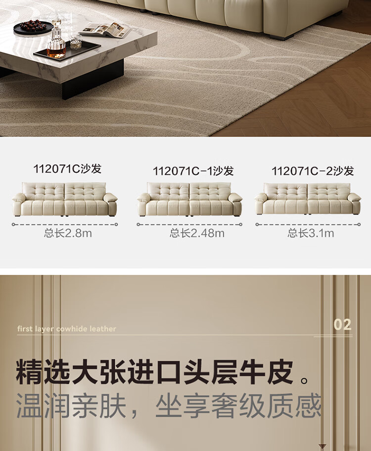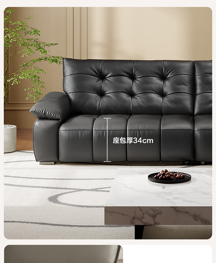 全友家居 复古轻奢风高端真皮沙发客厅家用大黑牛皮艺一字直排式沙发