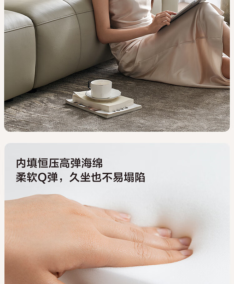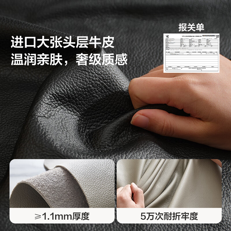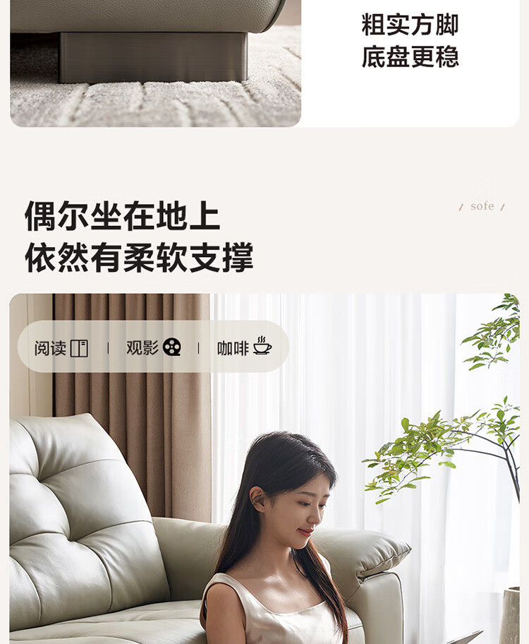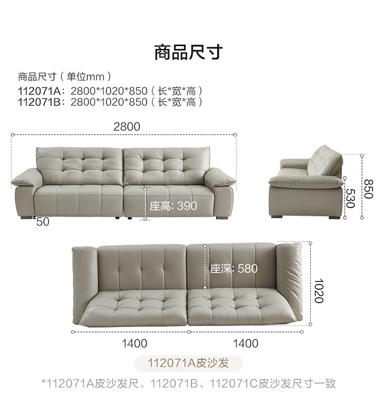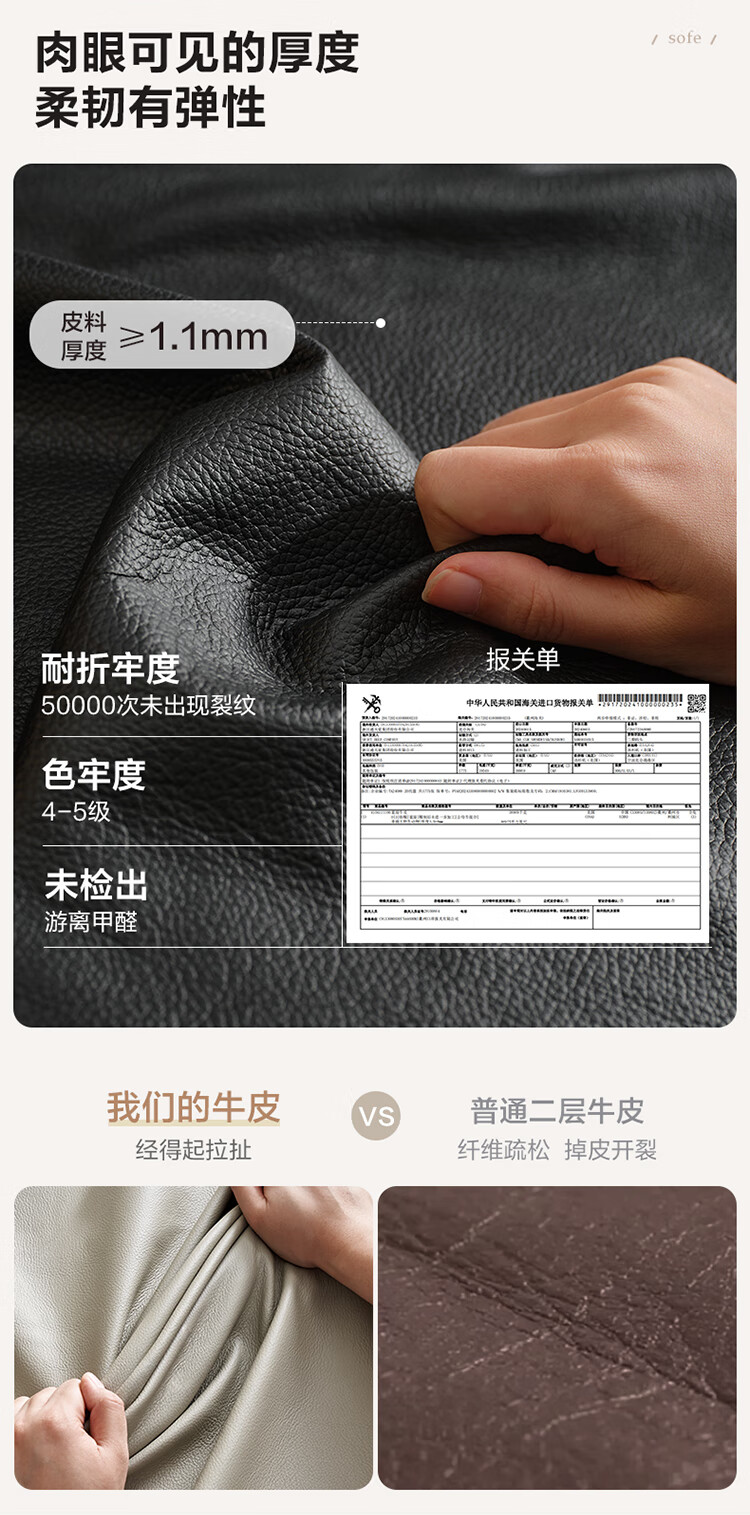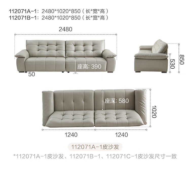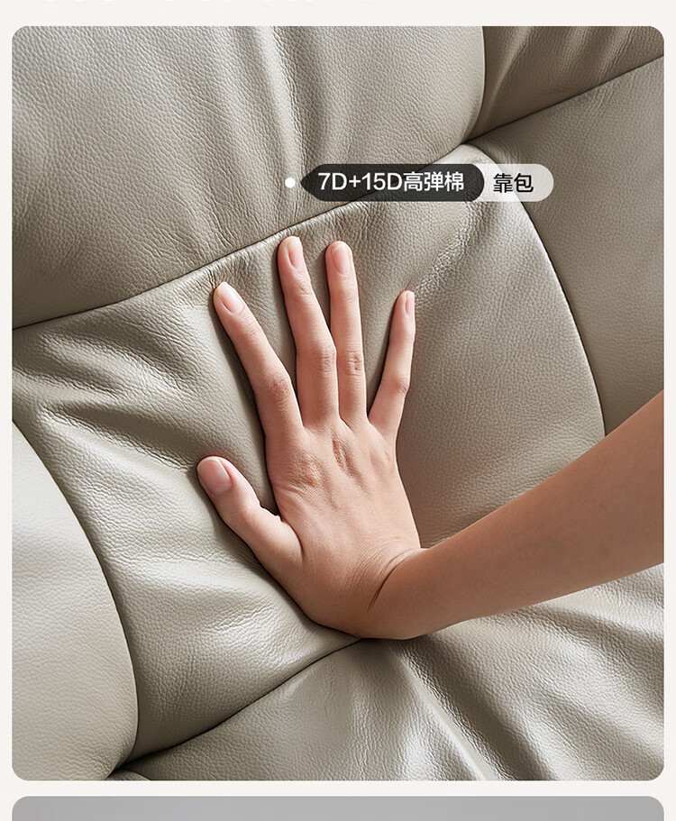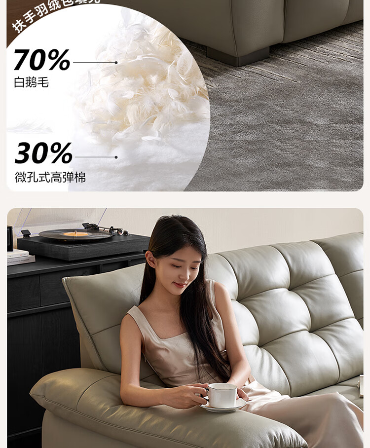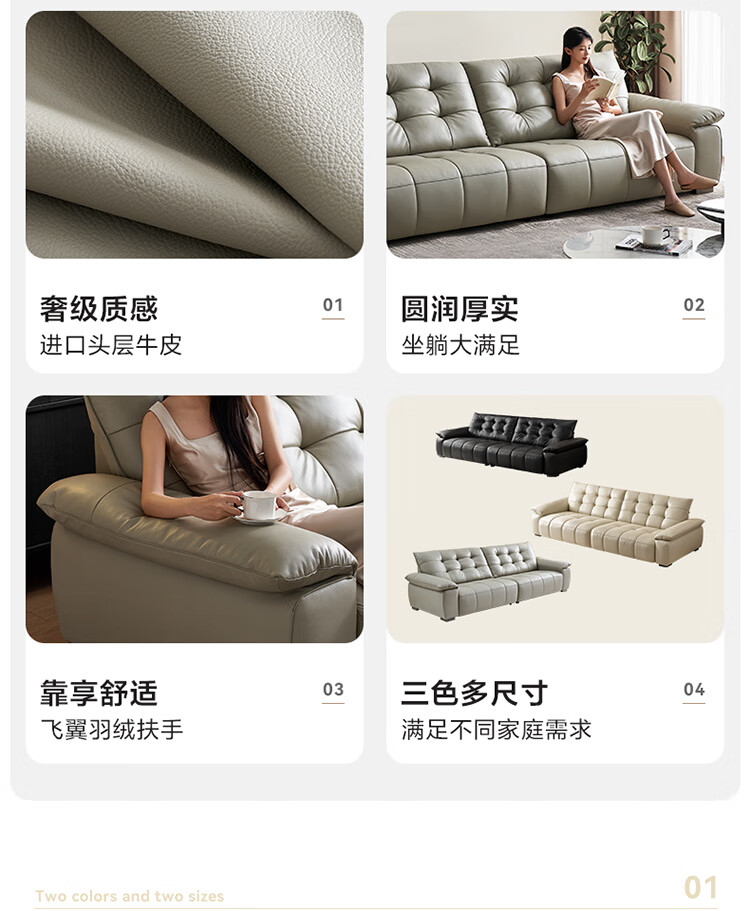 全友家居 复古轻奢风高端真皮沙发客厅家用大黑牛皮艺一字直排式沙发