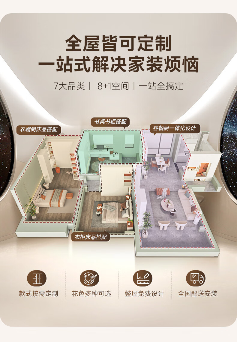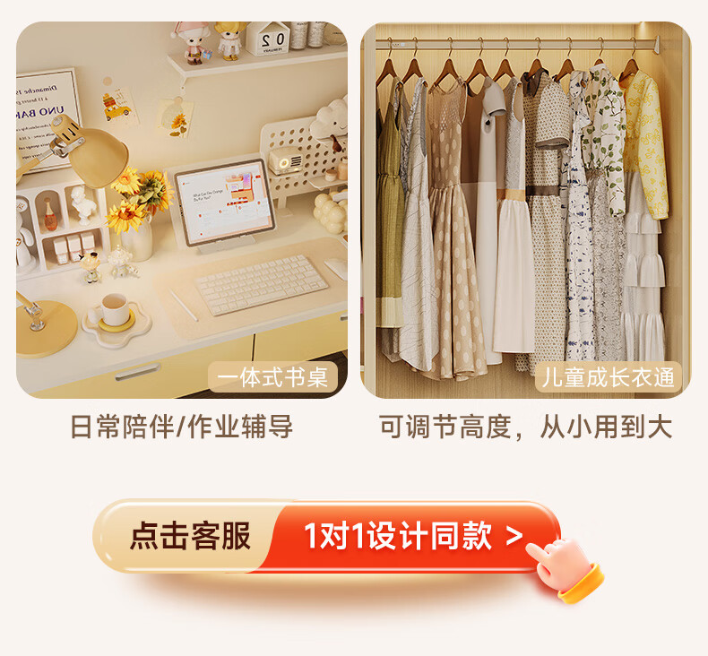 索菲亚衣柜 青少年卧室多巴胺配色收纳衣橱 次卧室家具储物整体衣柜定制 会员权益金
