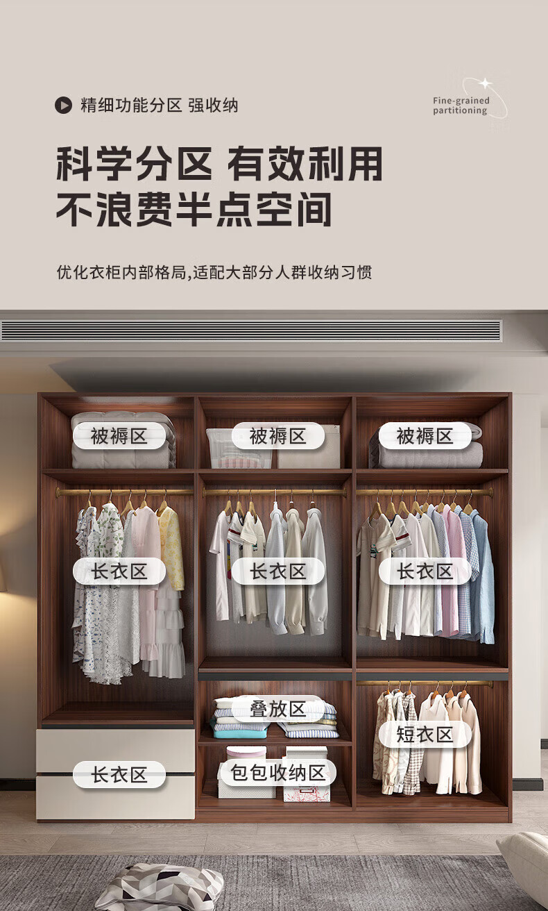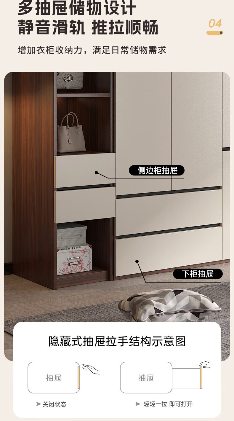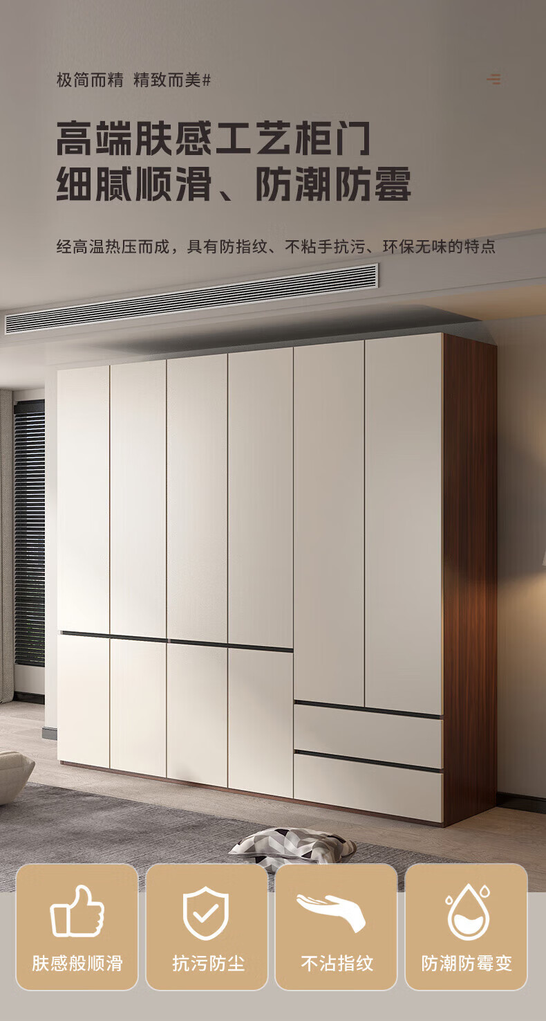 志磊ENF级 衣柜卧室轻奢大衣柜带抽屉家用大储物收纳柜子 【四门】1.6米衣柜