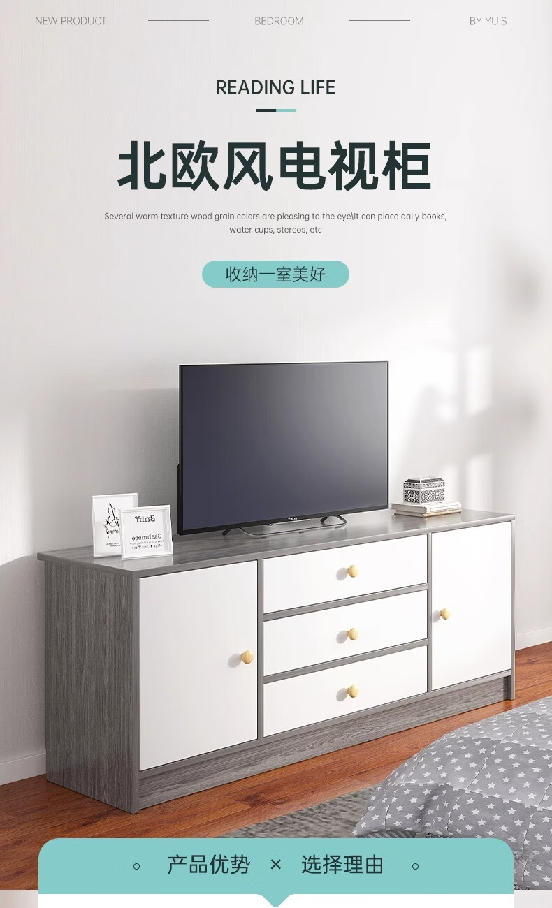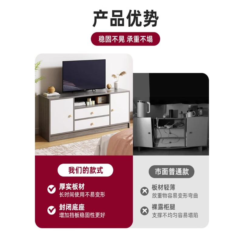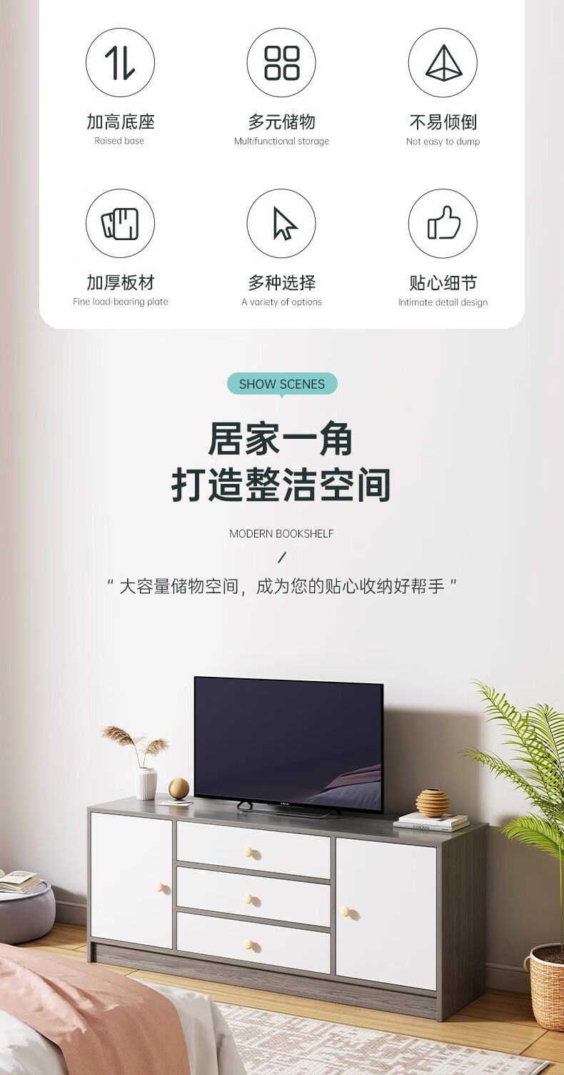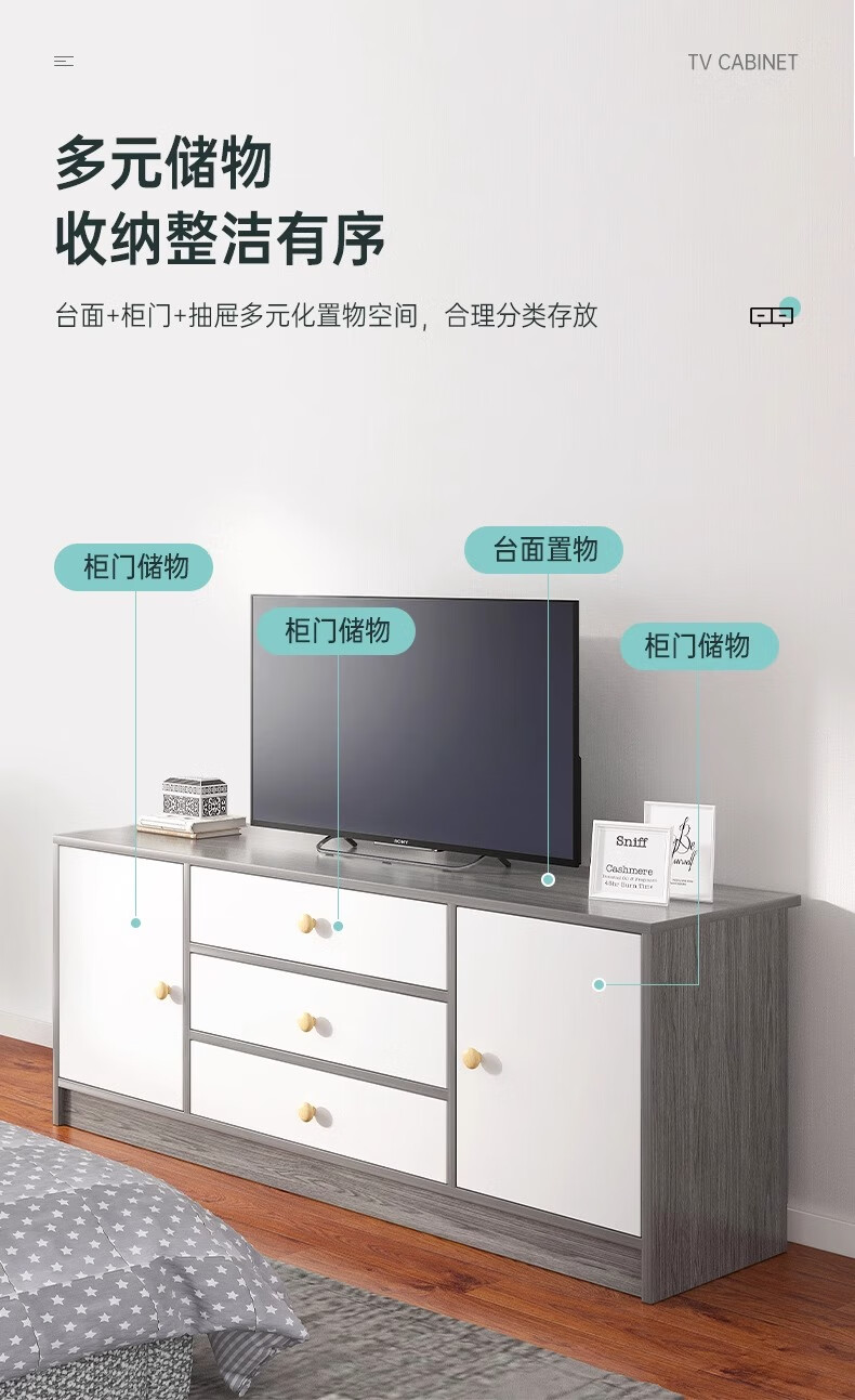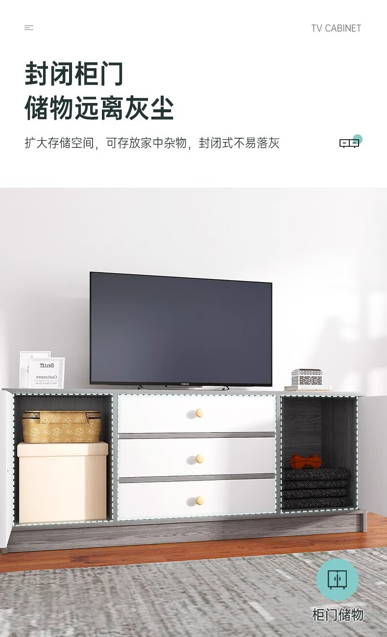 米客米家电视柜落地2025新款客厅家用卧室高款小户型现代简约储物电视机柜 【热卖四门】莫兰迪灰+暖白120cm 组装款